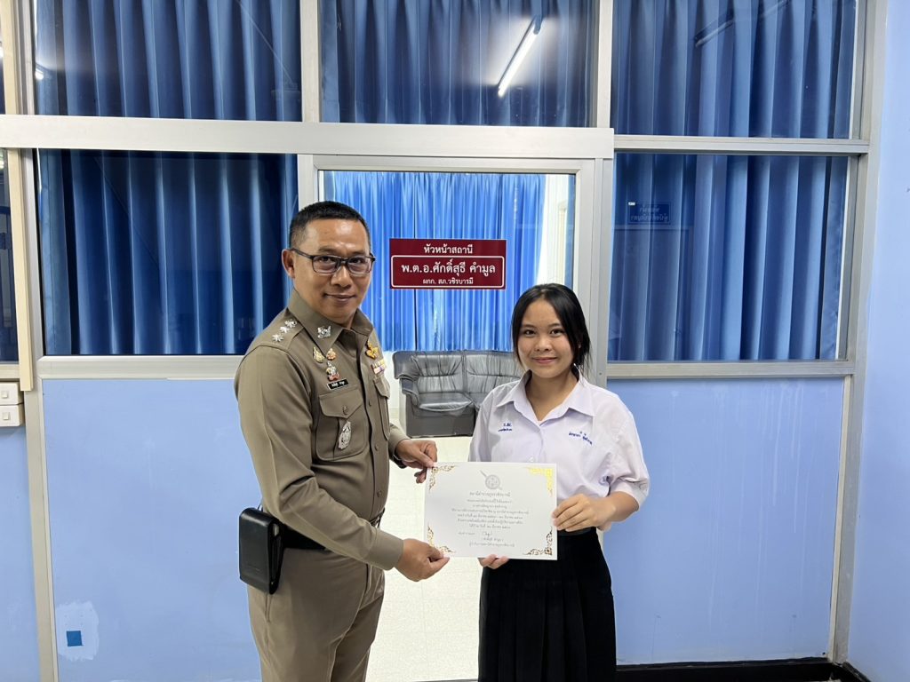 ได้มอบเกียรติบัตรให้แก่นักเรียน