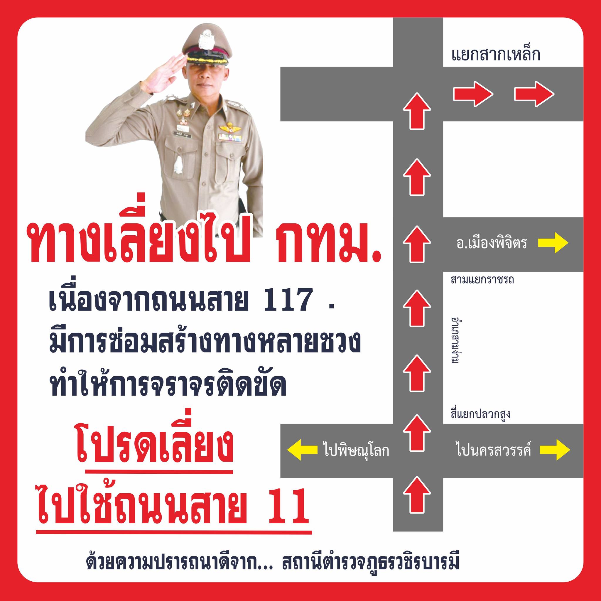 ข่าวกิจกรรม 04 ประชาสัมพันธ์เส้นทางเลี่ยงการจราจร เนื่องจากถนนสาย 117 มีการซ่อมสร้างทางหลายช่วง ส่งผ